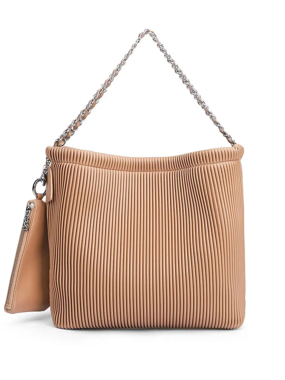 Crafted with an elegant chain design and draped in the softest, most luscious pleated vegan leather, every touch is an experience of luxury. Stylishly roomy but never overwhelming, our Shoulder Bag is the perfect companion for work, a lunch date, or to add that chic vibe to your everyday ensemble!
