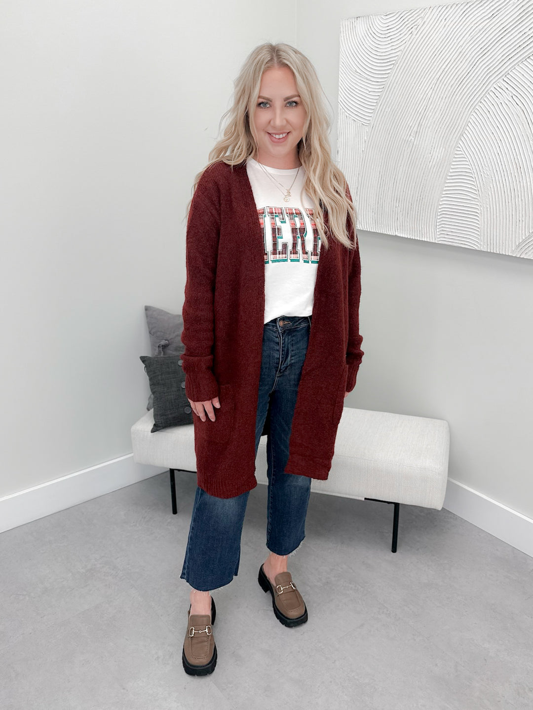 Flynn Cozy Cardigan in Burgundy
