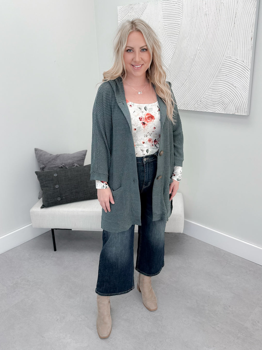 Kaylee Waffle Cardi in Teal
