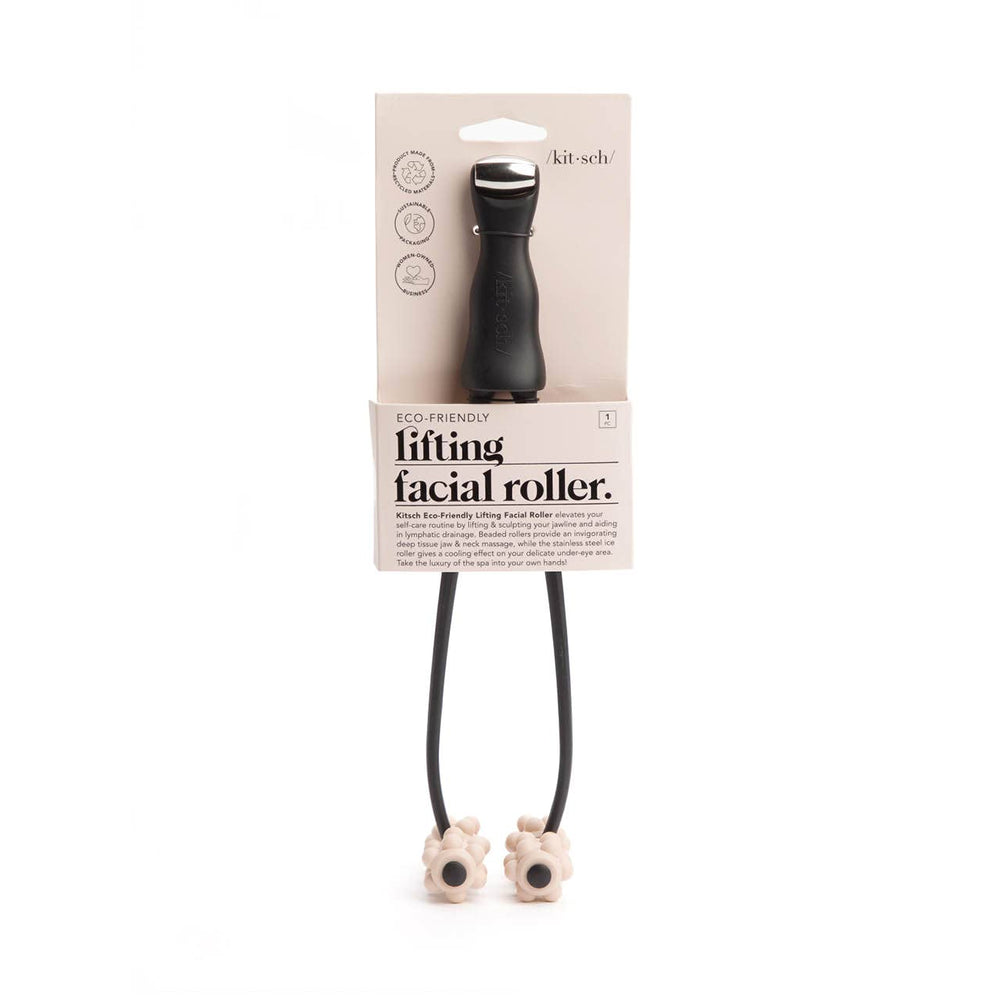 Kitsch Eco-Friendly Lifting Facial Roller elevates your self-care routine by lifting & sculpting your jawline and aiding in lymphatic drainage. Beaded rollers provide an invigorating deep tissue jaw & neck massage, while the stainless steel ice roller gives a cooling effect on your delicate under-eye area.
