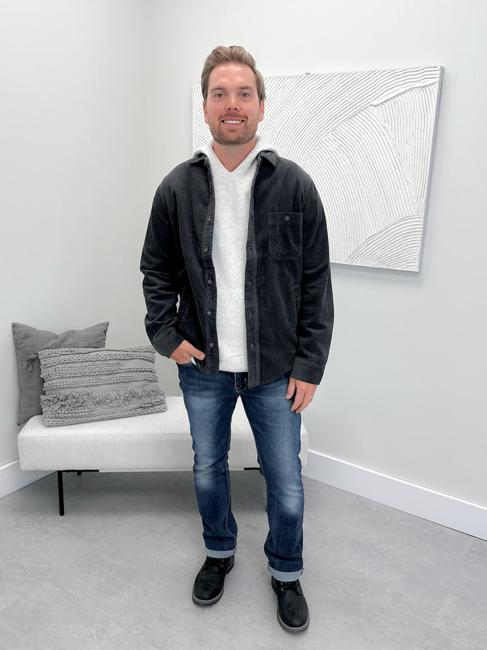 - Medium measures about: Length: 29" Pit to pit: 22" laid flat