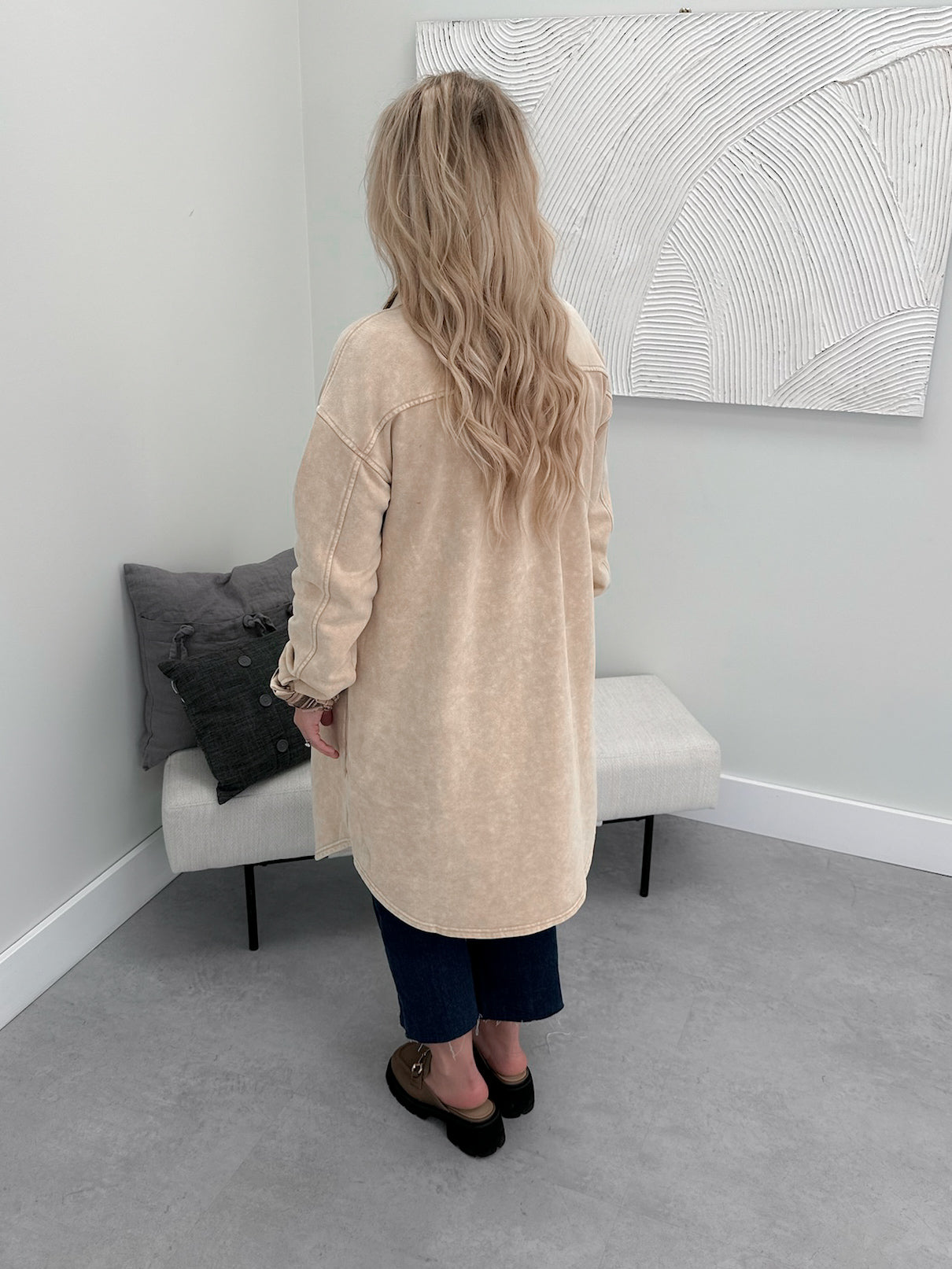 Oz Long Shacket in Almond
