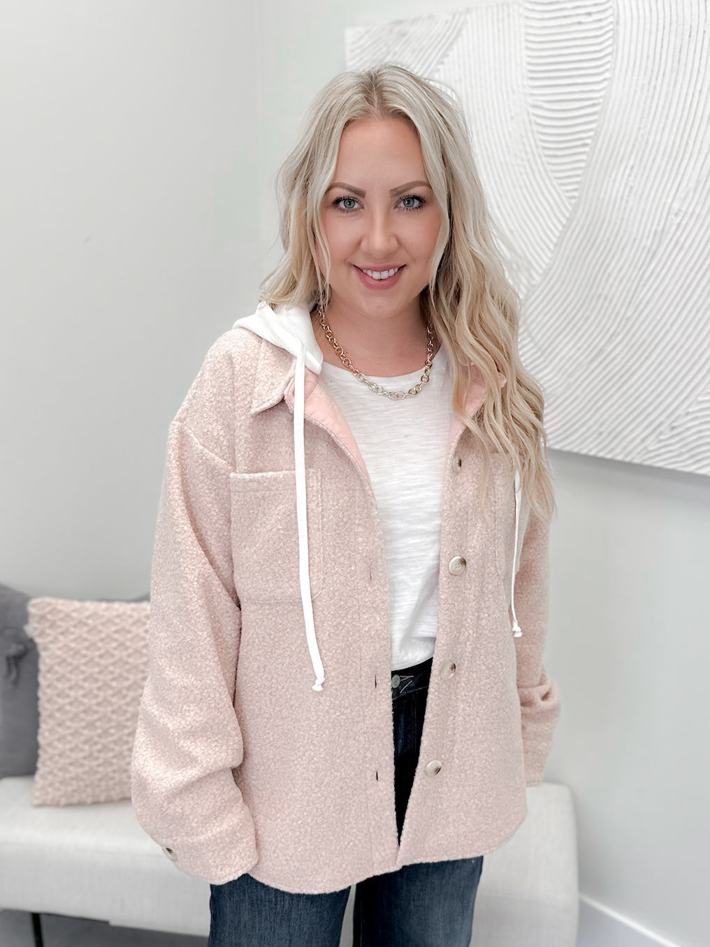 Wishes Boucle Shacket in Candy Pink