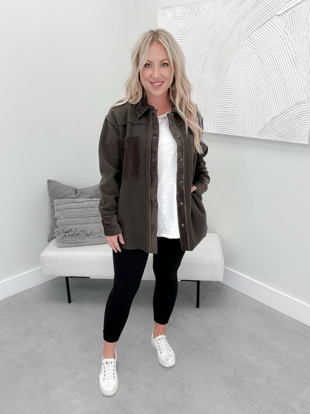 Atlas Corduroy Shacket in Olive