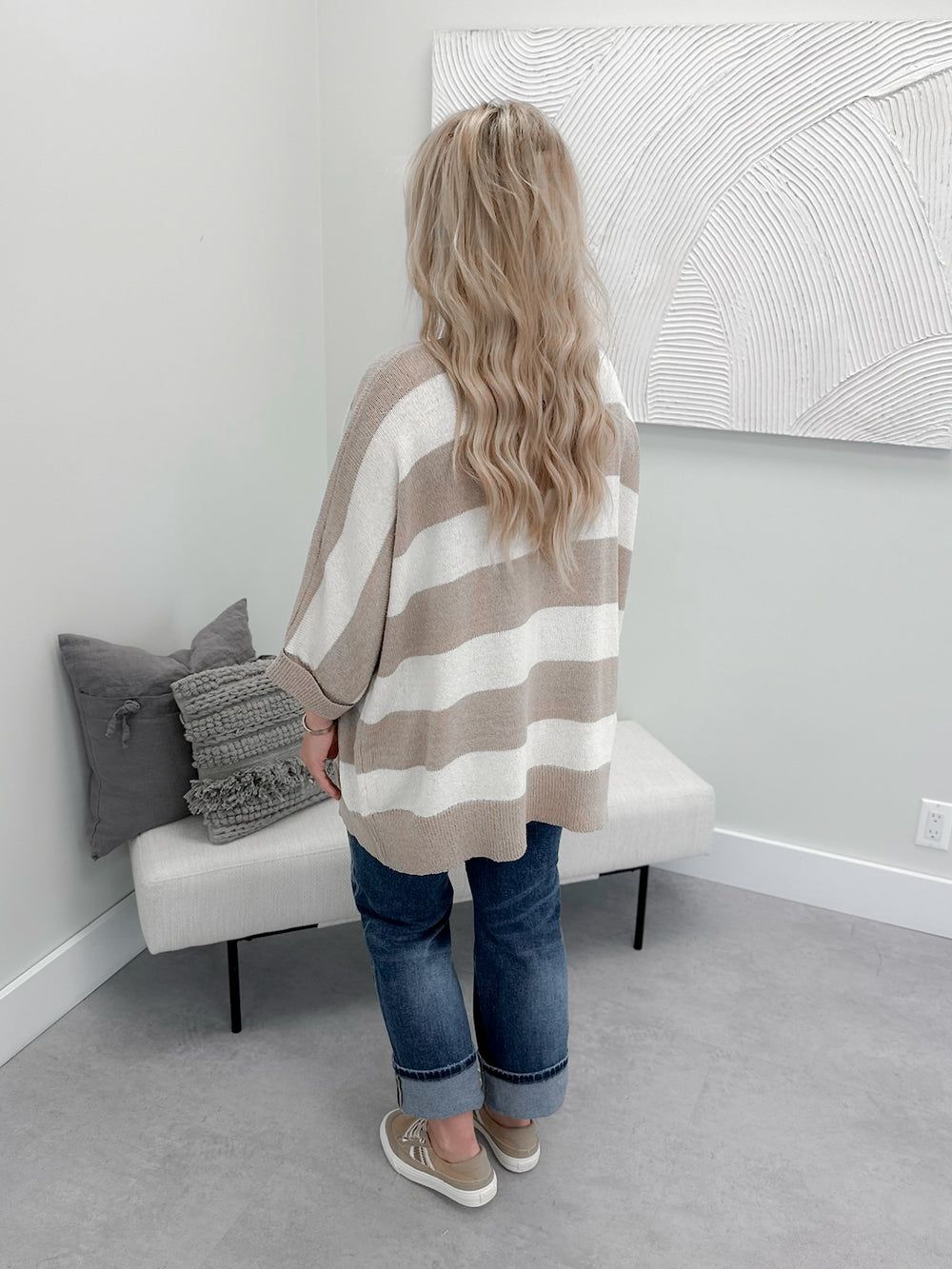 Chloe Striped Cardigan in Taupe