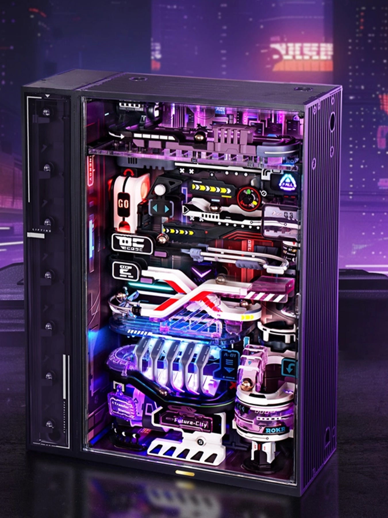 This kit offers an exhilarating, high-tech twist on the classic marble run. Featuring a sleek, futuristic design, it combines cutting-edge technology with dynamic action. The powered mechanism launches the marble into motion, while an automatic rotating module ensures smooth and continuous movement through intricate tracks. As the marble races through tunnels, spirals, and loops, the powered system delivers an endless, thrilling journey. The set's modern, sci-fi-inspired elements include sleek, metallic colors, glowing accents, and precision-engineered components. Perfect for marble run enthusiasts and challenge lovers alike, the Futuristic Powered Marble Run merges creativity, engineering, and technology in an exciting way.