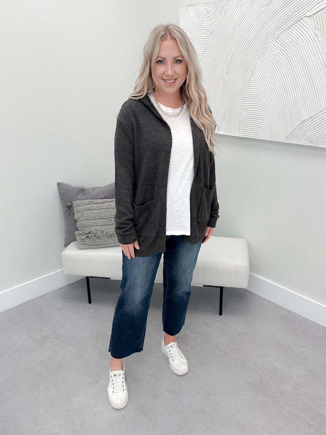 Soft Hooded Cardigan in Smoke