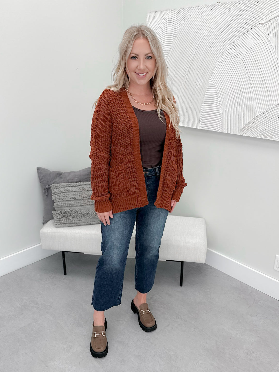 Chenille Cardigan in Pumpkin