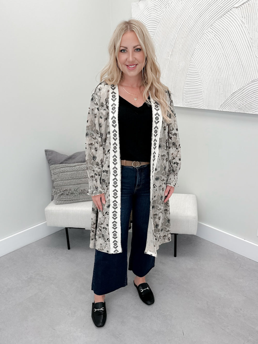 Calliope Waffle Cardigan in Taupe Floral by Pol